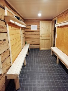 The dressing room has narrow benches and coat racks as well as narrow upper shelves. There are no lockable compartments. You can inquire about found goods by e-mail or by phone.